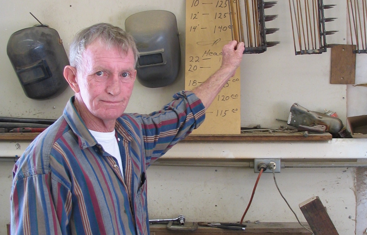 Born to a barber and a beautician in 1942, Corky Richards did not grow up in the seafood industry. But he got in it as soon as he could. Corky’s family moved to Apalachicola when he was a teenager. He immediately got to work on the bay. Using his carpentry skills, he began to make his own oyster tongs. One year in the off-season, a local marine supply company asked him to make tongs for the store. Soon Corky was making and selling tongs to oystermen throughout Franklin County. Business was so good Corky opened a woodworking shop. Originally, he worked in a building on Water Street in downtown Apalachicola. There Corky fashioned pine and steel into custom pieces. Today Corky and his son Rodney work together in a workshop on the edge of town. Now, though, they spend more time making cabinets than tongs. But Rodney still makes and repairs tongs for some of his father’s longtime customers. They are the only ones in town still making them by hand. And they may not be doing it much longer. Corky says that when he retires, Rodney will probably retire too. And the days of handcrafted oyster tongs will retire with them.