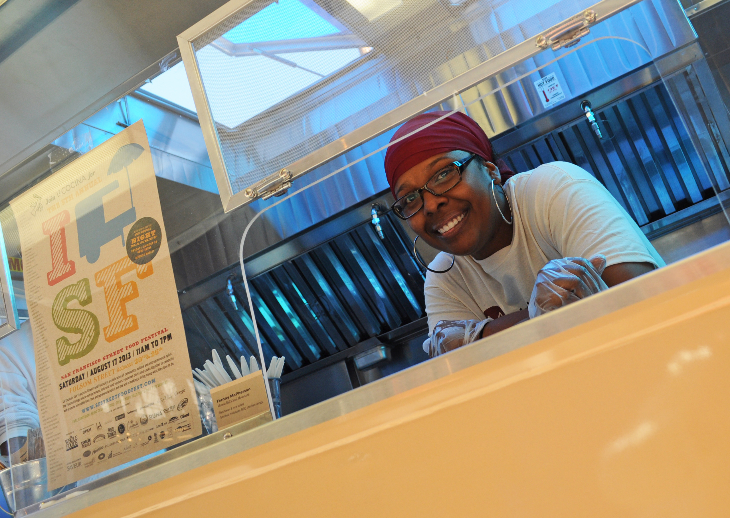 Cooking has always been a passion for Fernay, though she never thought of it as a career. But, in 2007, after being laid off from her job at AT&T, Fernay was inspired to put her energy into something she loves, so she decided to go to culinary school. Upon graduation, she started a catering business, but she wanted more. Fernay completed the program at La Cocina and, in 2013, she launched Minnie Bell’s Soul Movement, a soul food truck named after her great aunt and grandmother, whose recipes she features on her menu. Fernay has also added her own twist to some of the things she makes. She adds jalapeños to her Great Aunt Minnie’s hot water cornbread and makes the custard for her banana pudding cupcake with mascarpone. One recipe she’ll never change: her Grandmother Lillie Bell’s caramel cake.