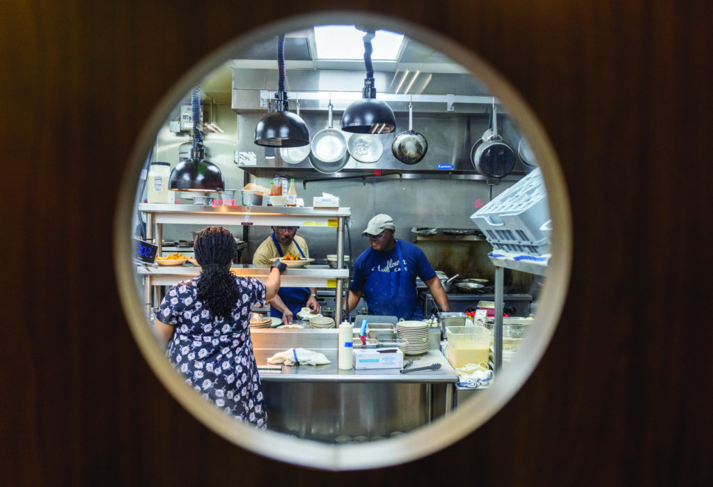 When Jerry Kountouris announced he was selling the Mayflower, Sanders was one of two employees left in the dining room, serving tables and working the cash register. The staff dwindled, but she stayed to keep the restaurant open. So did Anthony Monroe, the night manager, who has worked in the back of the house for fifteen years. “I had to just maintain because there was nobody else,” he says. Customers aged, and the climb to the bathroom grew burdensome. “It was time for a change,” says Monroe.