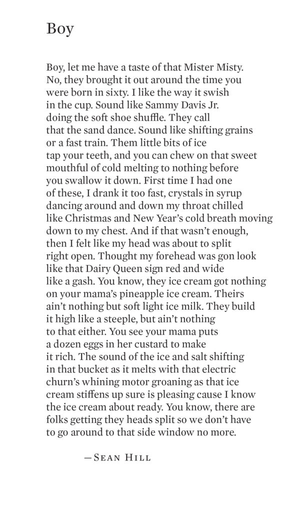 “Boy,” from Blood Ties & Brown Liquor. Copyright © 2008 by Sean Hill. Reprinted by permission of University of Georgia Press.