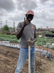 One of these new farmers is Constant Ngouala. A native of Congo-Brazzaville, he joined Plant it Forward shortly after arriving in Houston. He now mentors new arrivals as a Master Gardener while farming his own rented plot. In addition to sharing his experiences as a refugee, he discusses the difficulties he faces as an area market farmer.