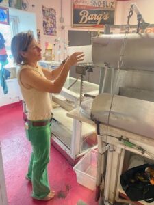 Remarkably, Ernest’s hand-built machines are still in use today, as are many of Mary’s syrup recipes, and the business continues to cool off customers with some “air-conditioning for your tummy.” Hansen’s Sno-Bliz is now in its 86th year, with Ernest and Mary’s granddaughter, Ashley Hansen, at the helm. Ashley’s was a long and loving journey to take on the business. She learned alongside her grandparents day by day. In a city that practically worships tradition, she honors her family and her customers by maintaining not just the original 1930s ice-shaving mechanics and syrup recipes, but also by cultivating the warm hospitality her grandparents always extended to anyone who entered.