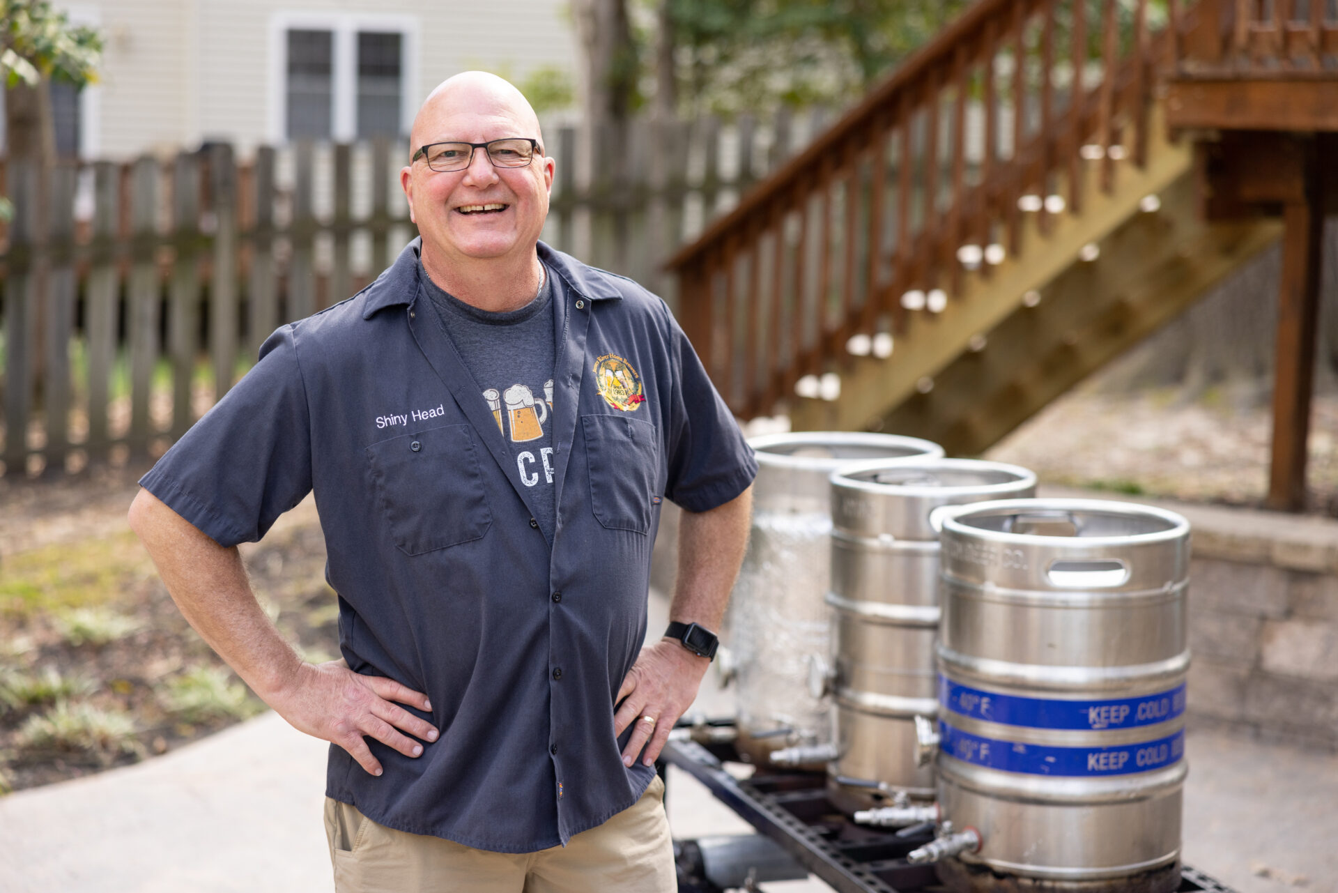Allan Sepkowski is a homebrewer originally from rural upstate New York. Known by his friends as “Shiny Head,” Allan is an active member of the James River Homebrewers. During Allan’s childhood, he saw his mother cooking for their family of seven and learned a few recipes from her, including a chocolate mayonnaise cake. Allan realized he loved serving people what that he made during a world food project in school where he made an Indian-inspired curry chicken. During his career, he worked for food distributers. Allan started homebrewing in the early 2010s, starting off with a pale ale that he made on his stove. As he expanded his operation, Allan connected with members of the James River Homebrewers at a Brew Day and started going to their meetings. He “caught the bug” of homebrewing and dove into the craft. He learned from research and from his fellow homebrewers. Allan has also submitted his beers to competitions and has won silver and bronze medals for his brews. Allan sees the technology of homebrewing improving to the point where he anticipates more folks getting interested in the craft.