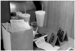 DR: Here in the restaurant? [pause] Yes. It depends on the customer. Some people will tell you that the Cornish hen is the most outstanding item that we have. Others will say the ribs. Many would say the baloney. Others would say the smoked turkey.