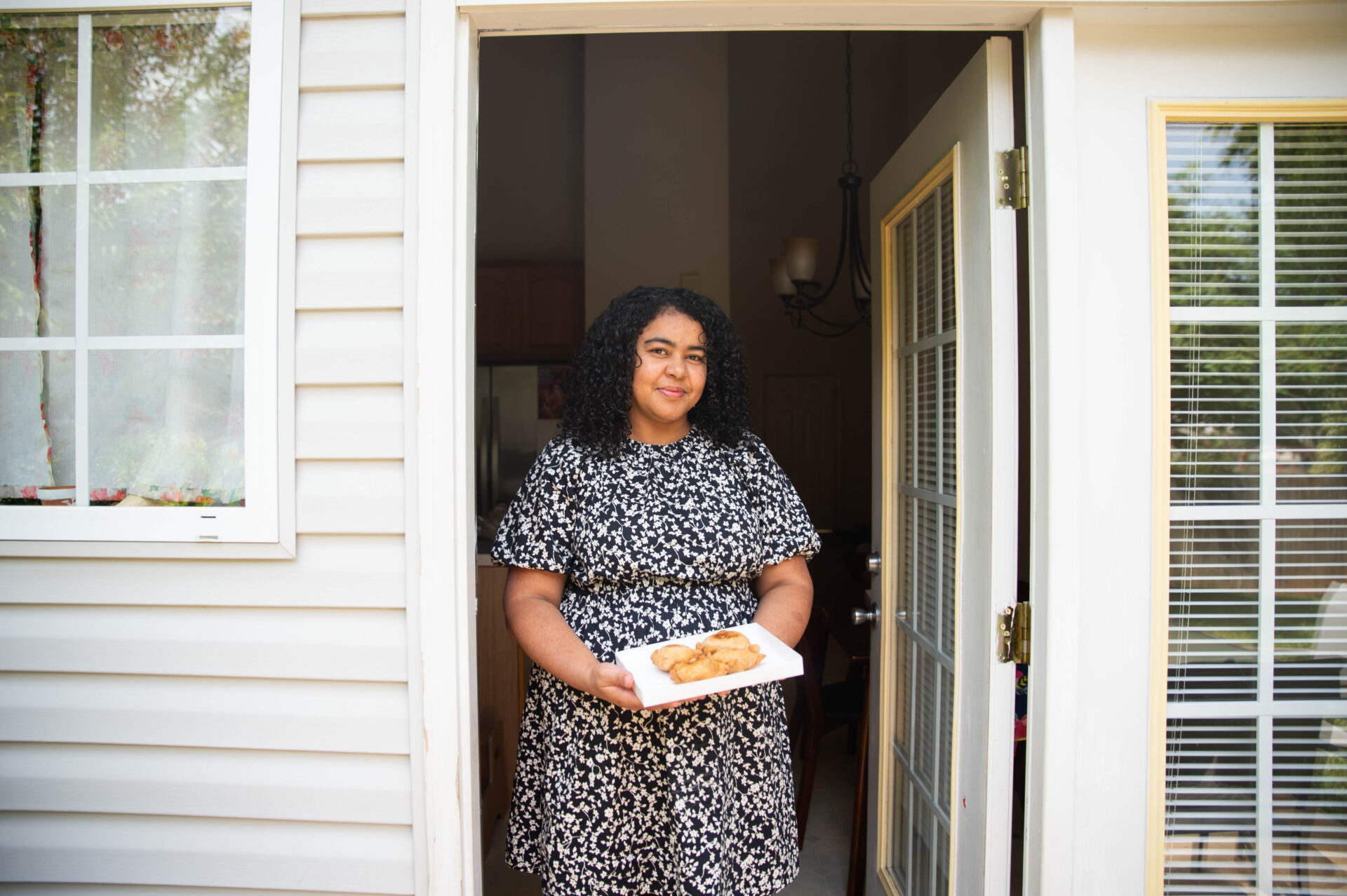 Livia Alves navigates Brazilian, Indian, and Southern flavors as she runs a bakery from her home in Mebane, NC. Alves is from Pindamonhangaba, a town in rural Brazil. As a young woman in São Paulo, she worked with her family preparing boxed lunches. She came to the United States with her husband and worked in the kitchen of a Hare Krishna (International Society for Krishna Consciousness) temple. As a Hare Krishna devotee, she is influenced by Indian spices and dishes, and the central tenet of vegetarianism. Her baked foods include samosas, held together with her signature braided edges, and vegan desserts. Through social media, she meets clients and bakes for events like birthday parties and dance recitals, always seeking feedback on what the region’s people enjoy, and trying out new ways to make classics vegan. She is a focused and contemplative baker, in her words: “I like to be very peaceful and just focused on that moment, not thinking about, no, I have to do this fast…For me I feel more centered. And I like to pay attention and always take notes.”