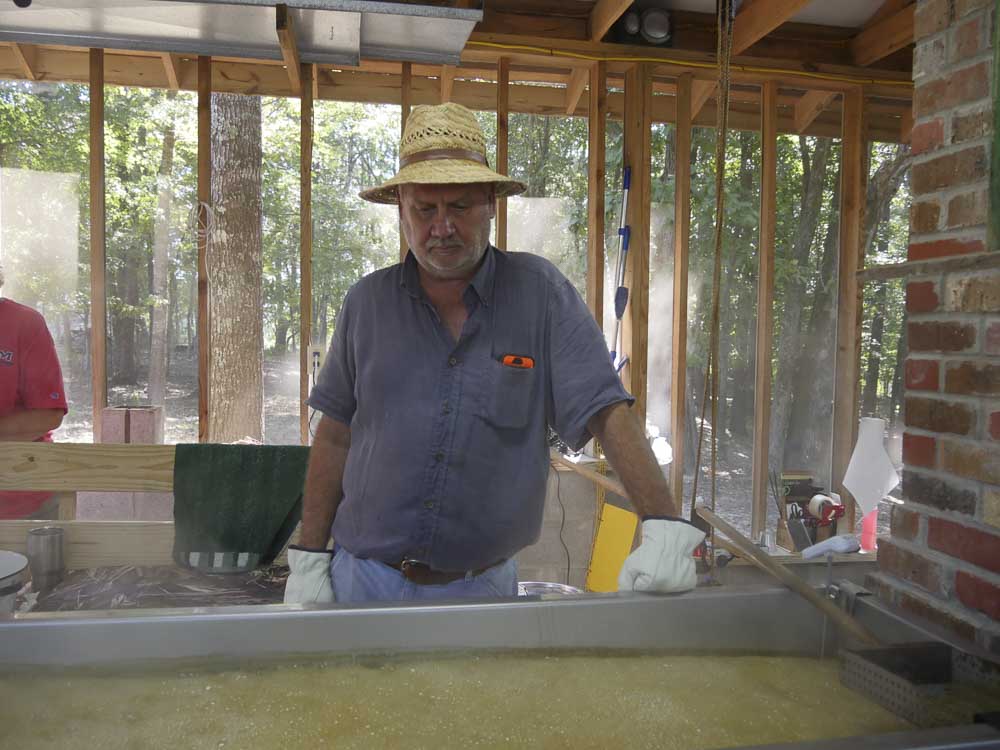 Ronald Jenkins was born in Jackson, Mississippi in 1957. His family moved to Bruce, Mississippi in 1959 to be closer to family. His father ran a country store in the community and his mother worked in a garment plant. As a result, Jenkins spent much of his childhood with his maternal grandfather, E.L. Steele. Steele cooked sorghum for the community, and Jenkins spent time with him. Mose Tuggle, who worked for Steele, often helped him cook for the public. A full time job and a family kept Jenkins from growing and cooking sorghum himself. After his grandfather became too old to cook sorghum, Jenkins still spent time with Tuggle each fall when he cooked sorghum.