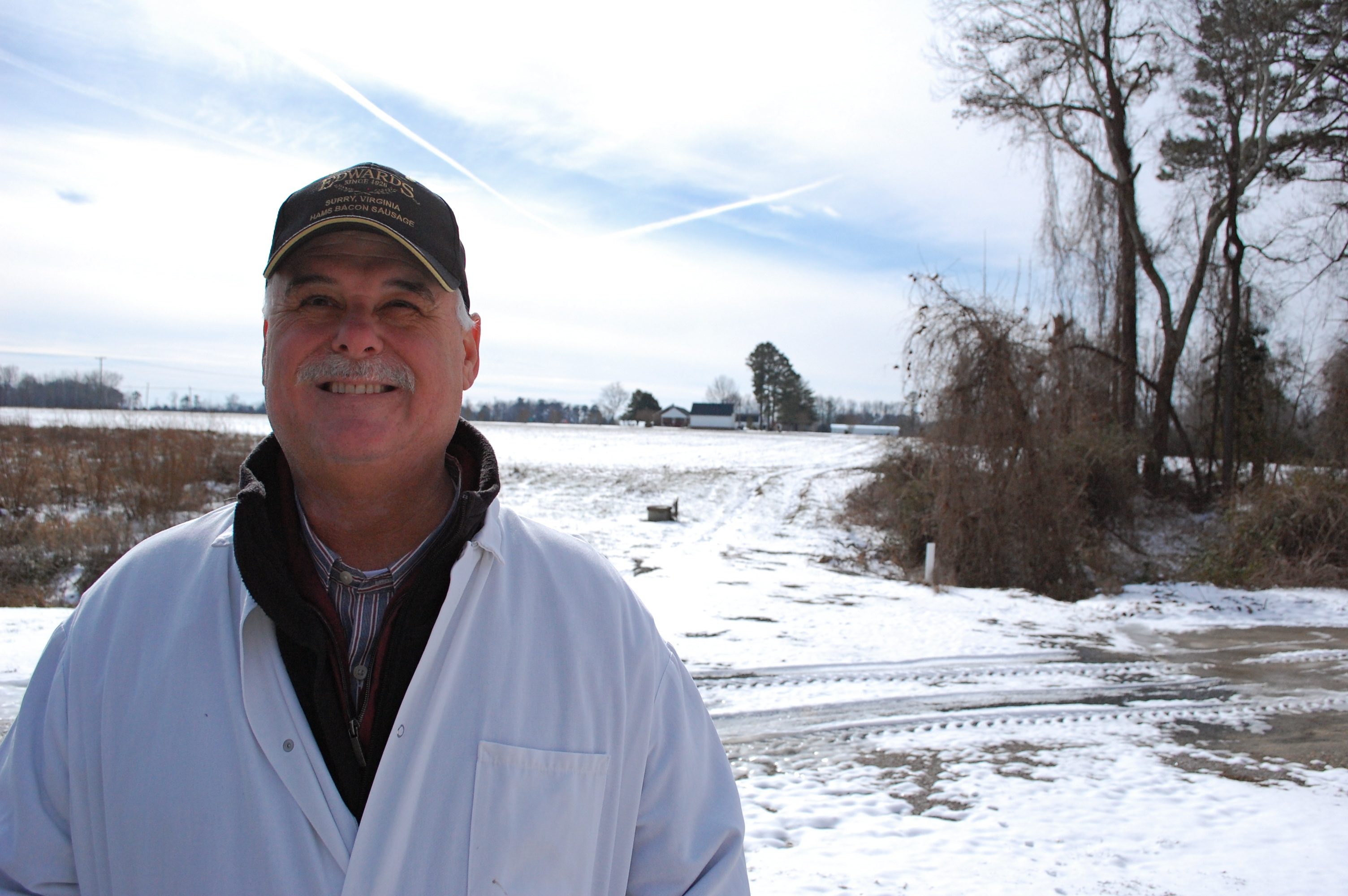 It started on a ferry route running between Jamestown and Surry, Virginia in 1925. One of the stops was a newly restored tourist destination: Colonial Williamsburg. Sam Edwards I, the boat’s captain, began selling ham sandwiches to passengers using the same ham he learned to cure on his family’s farm. One year later he started his business and sold hams to country stores and restaurants. His son, Sam II, eventually took over and transitioned the curing process from ambient to temperature-controlled rooms, using observations and data from his father’s methods. He brought his then-teenage son, Sam III, to work simply because the business needed an extra body. After earning a business degree, Sam III aspired to work on Wall Street. Unfortunately it was the late 1970s, and the economy took a nosedive. His plan was to work for the family business for a short while until he could apply to graduate school, but he stayed on. He’s now the company’s president and curemaster, and has returned full-circle to some of his grandfather’s traditions, like feeding hogs Virginia peanuts. For almost ninety years, the family’s sense of sight, smell, and taste has maintained the consistent quality and flavor of an Edwards ham.