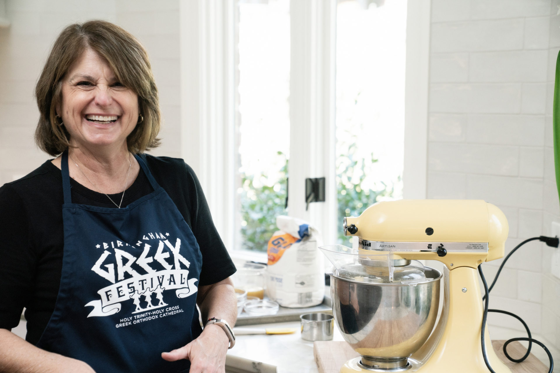 Sonthe Burge, born in 1957, grew up in the Gulf Breeze community of Pensacola, Florida. After marrying and relocating to Birmingham in 1981, she joined Holy Trinity-Holy Cross Greek Orthodox Cathedral. She has been an active participant in their Greek Food Festival since that time.