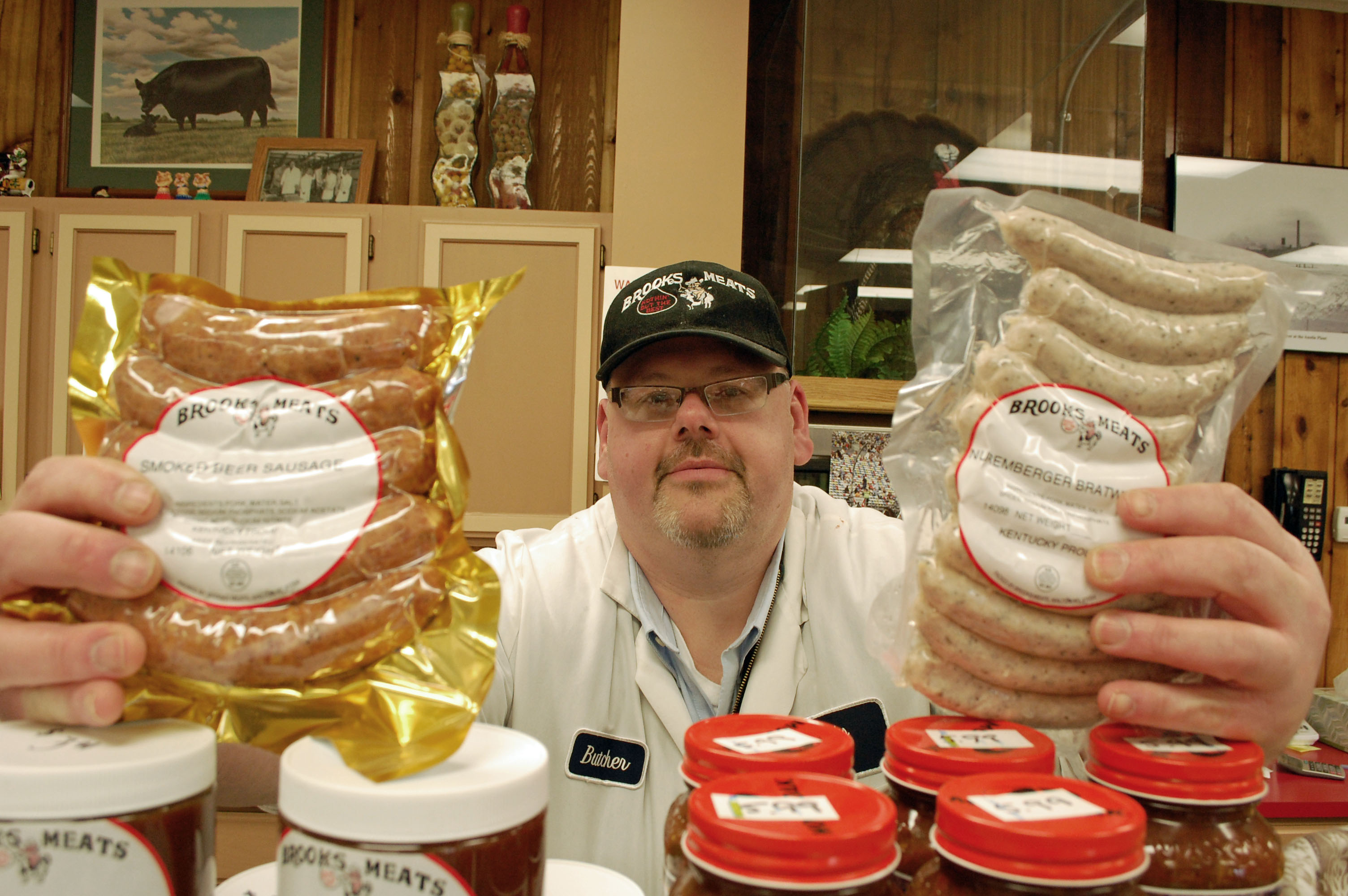 Born and raised in Neunkirchern in Saarland, Germany, curing meat was an inherent part of Stefan Neumann’s culture. “Those traditions always intrigued me,” he says. His father, Guenther, a coal miner, and his mother, Luise ran a restaurant called Marien Schenke. They slaughtered and cured meats for the restaurant in the basement, making salami, bacon, and ham. Stefan, the youngest of six brothers, helped his parents with their restaurant, but decided running a restaurant wasn’t for him (“I would like to have one day off.”). Stefan went through a six-year apprenticeship at an institute called Muskalla in Heidelberg to train as a master sausage maker (fleischermeister). He worked in his native country for a few years, then moved to Cameroon to opened a butcher shop in Yaounde. He settled in Kentucky in 1998, moving to Florence in a region of Northern Kentucky with a large German community. For the past seven years, Stefan’s worked as the production manager and master sausage maker at Brooks Meats in Walton. Among his many creations: more than 40 different kinds of sausage, Kentucky country ham, and traditional German Black Forest ham.
