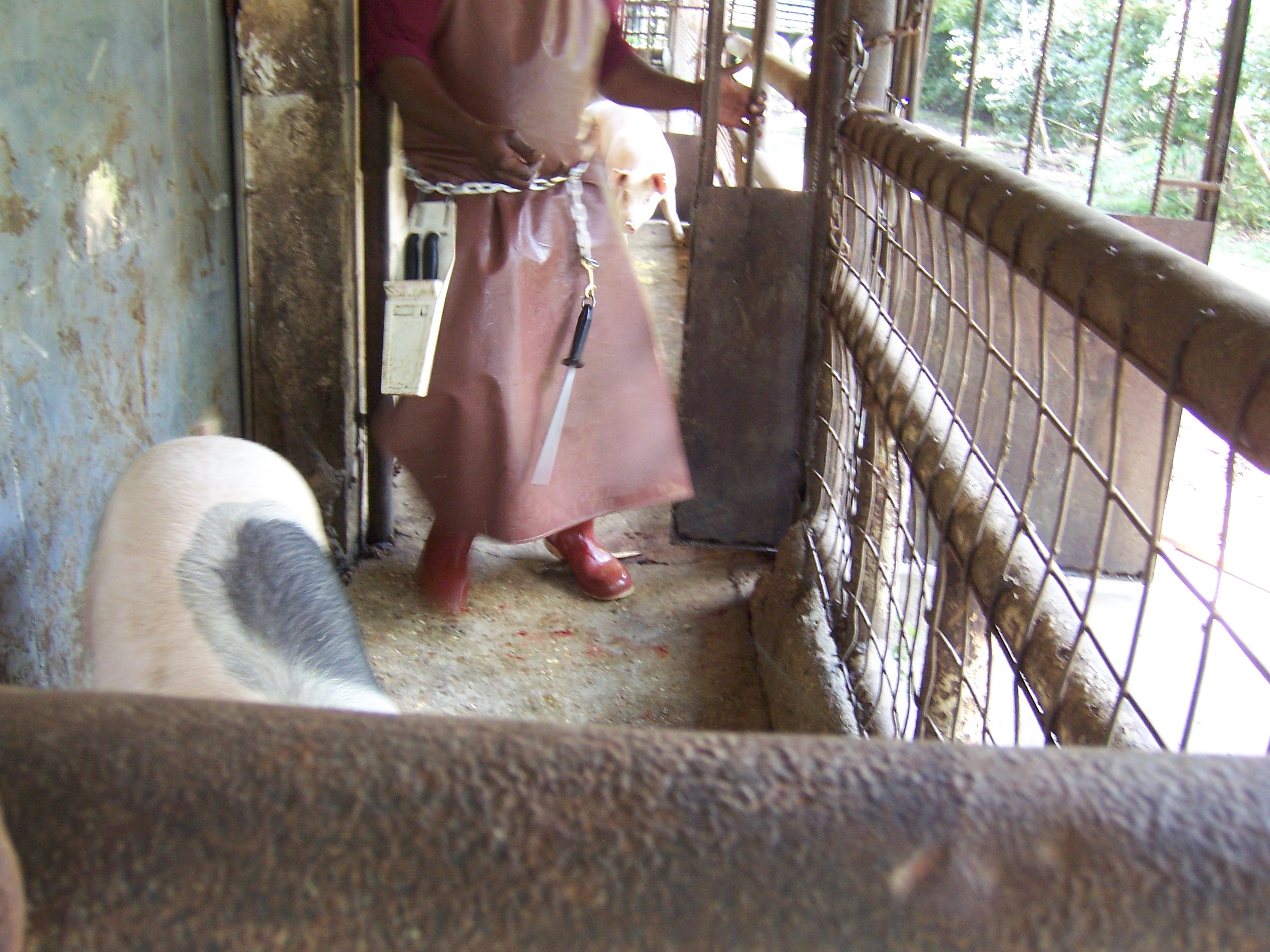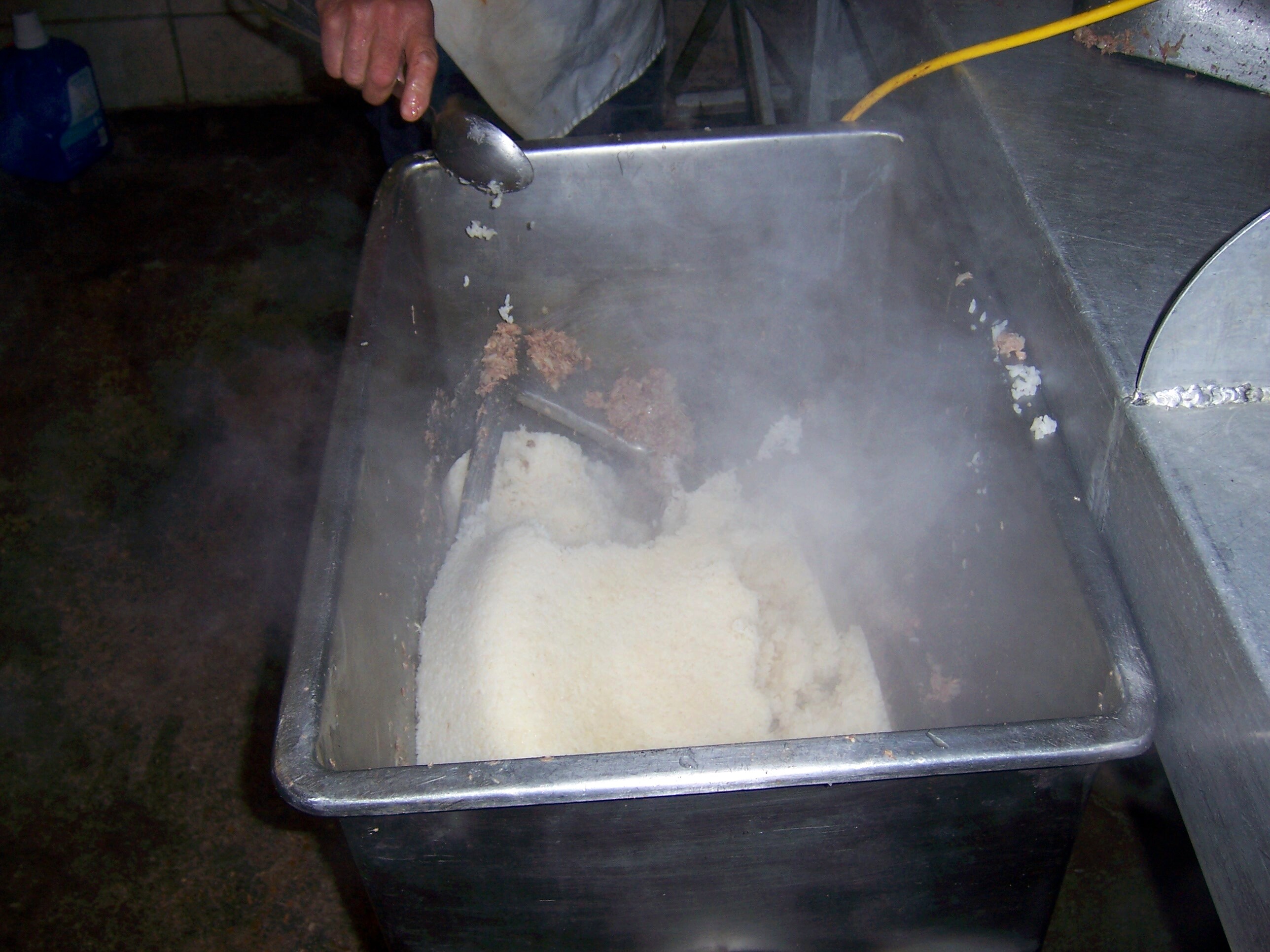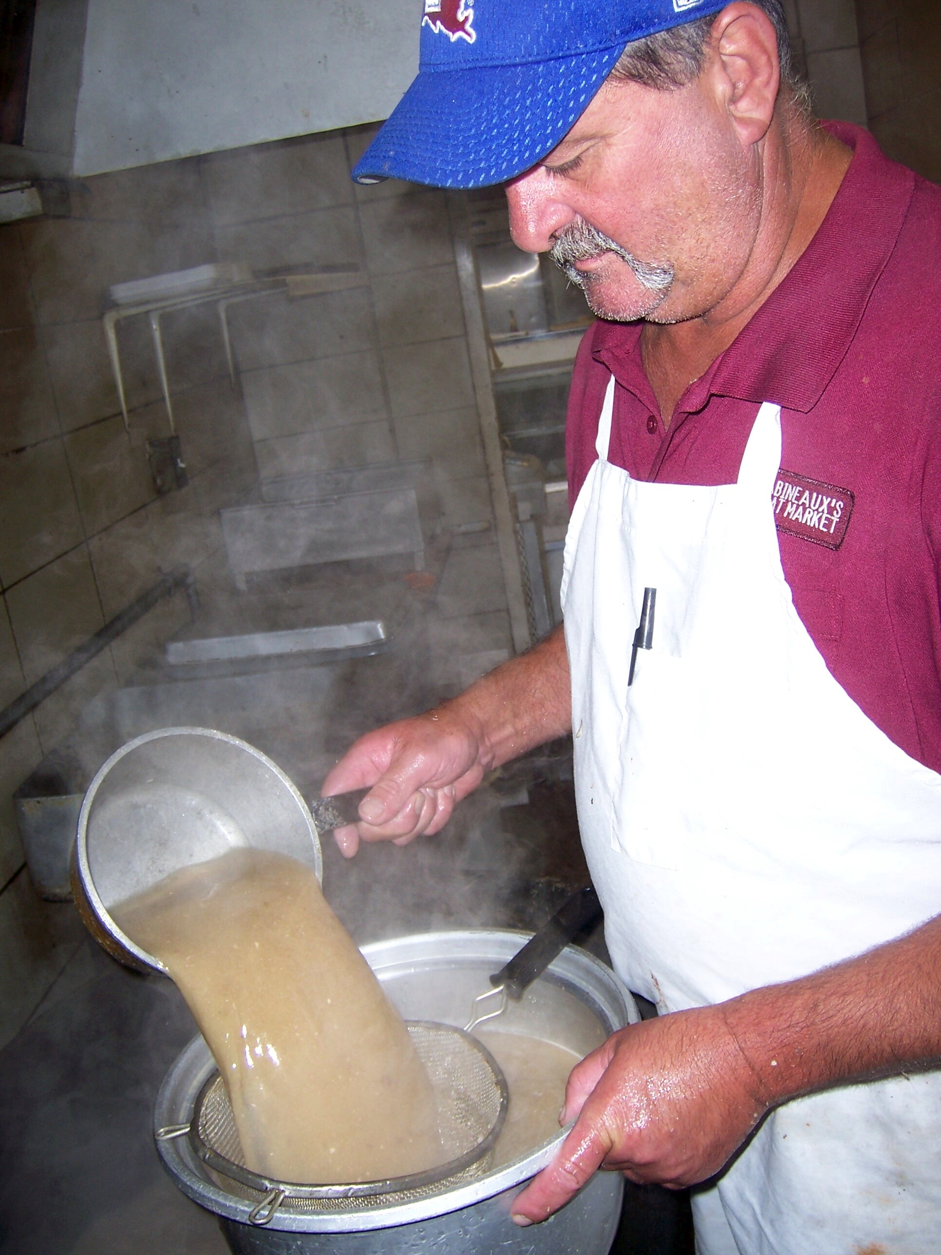 FAIR WARNING: You are about to get a behind-the-scenes peek into the workings of a slaughterhouse. If the sight of blood isn’t on your list of things to see today, maybe you’d like to listen to Rodney Babineaux talk about his family’s tradition of making red boudin.