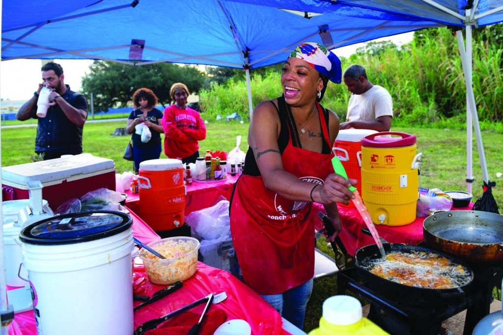On easy Saturday nights, when I plan to curl up on my comfy blue couch to binge-watch the latest series I’m behind on, first, I like to pick up loaded conch fritters from Miss Tammy Gallon.