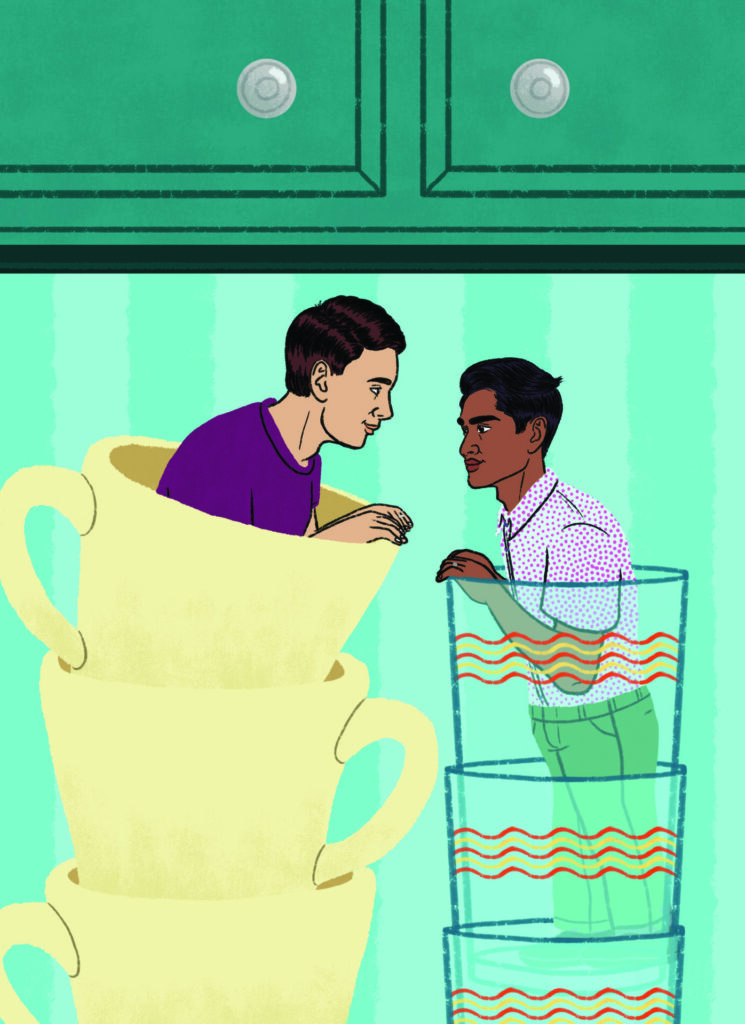 Meanwhile, the Noritake positively gleams next to buff linen napkins brought by dear friends for dinner one summer, whenever we serve the latest additions to our family of choice from the history of us. Every morning, that old orange Tupperware offers me my daily protein shake fix, silently clocking me as a third-wave gay. The totems that remain fill the gaps in our memories. They’re unconventional tools of kintsugi—the Japanese art that uses gold filigree to repair broken vessels.