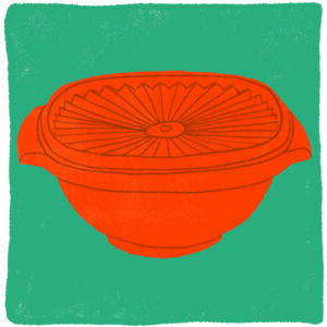 My parents kept a spotless kitchen though they both worked. We ate at a table my father cut from heart pine and wood-burned to a warm brown, in a room near their bedroom, in a half of the house they had built on rather than uproot us. Orange Tupperware canisters filled the kitchen’s dark, Amish-made walnut cabinets. Those canisters became prey. My sister and I could creep in stealth, past their bedroom door, open the cabinets and free the Tupperware for Saturday Night Live snacking. We knew how to avoid the squeaky betrayal of a single peel-and-stick floor tile by timing our steps during Dad’s snores.