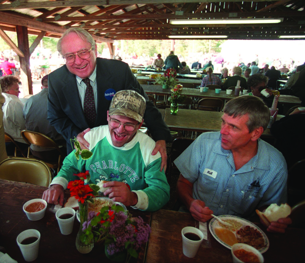 Even though that was only two decades ago, Spencer talks about his first Mallard Creek experience with the maudlin tone of someone recalling a sea captain who sailed away and never came back. He remembers the carnivalesque atmosphere of the event in those days, with hyped-up supporters hoisting enormous vertical placards above the massive crowd and backslapping candidates from both parties sandwich-boarding themselves between yard signs. But when he pulls up pictures to illustrate the ripsnorter he’s describing, he lingers on the Dems who’ve passed away.