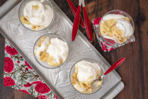 Not every barbecue place serves banana pudding, but more barbecue places serve banana pudding than any other single dessert. It’s a creamy cool-down after a smoky, robust meal. Some places scoop individual servings into grab-and-go cups, given that portability is a plus for barbecue desserts, especially in places that focus on lunch or take-away service. Folks need to get back to work or hit the road. But that doesn’t mean we should rush when making our banana pudding. Some places have taken so many shortcuts that all that’s left is instant pudding, Cool Whip, busted cookies, and wishful thinking. This is the real deal, featuring rich, silky homemade custard and real whipped cream. But do buy the Nilla Wafers; they can’t be improved on.