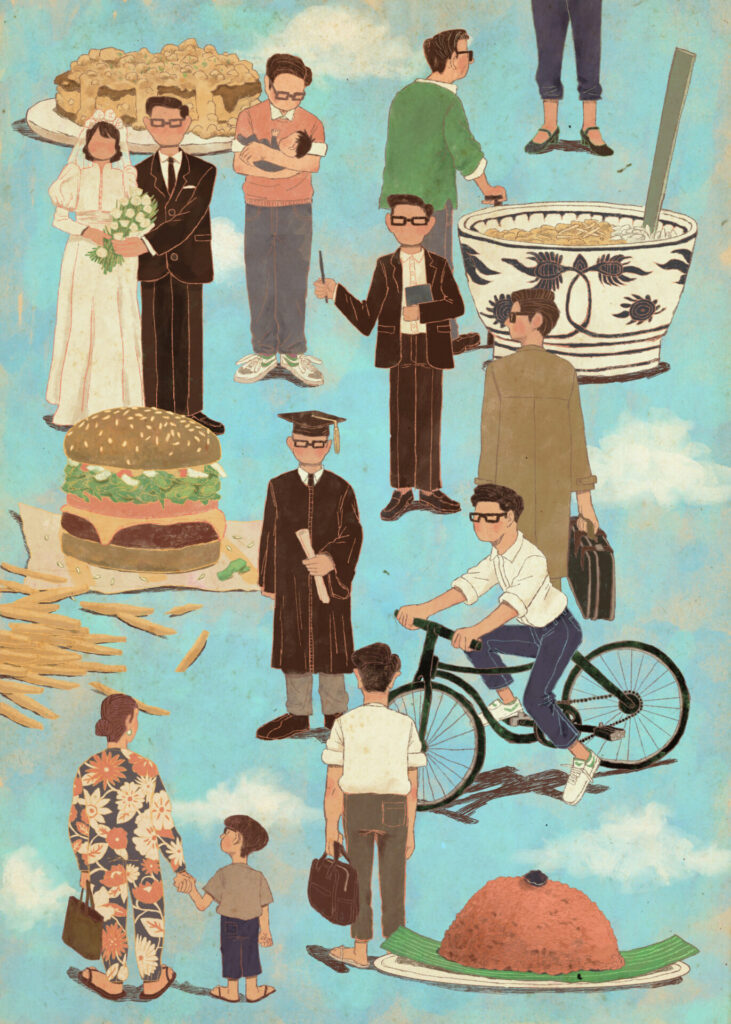 Joe and Chris were vegetarian. They mainly prepared meals of beans and rice with cheese (something my dad still makes to this day) or dishes from Frances Moore Lappé’s Diet for a Small Planet, a bestselling 1971 cookbook that promoted the environmental benefits of eating non-animal proteins. My dad, on the other hand, was a true carnivore. Growing up, he had eaten meat almost weekly, when his mother would slaughter pigs to sell at the market in his hometown. Luckily, once a week, Joe and Chris took my dad out to a local cafeteria-style restaurant that served Southern staples like fried chicken and pork chops. He remembers filling his tray with every meat except hamburgers—he wasn’t interested in the bun.