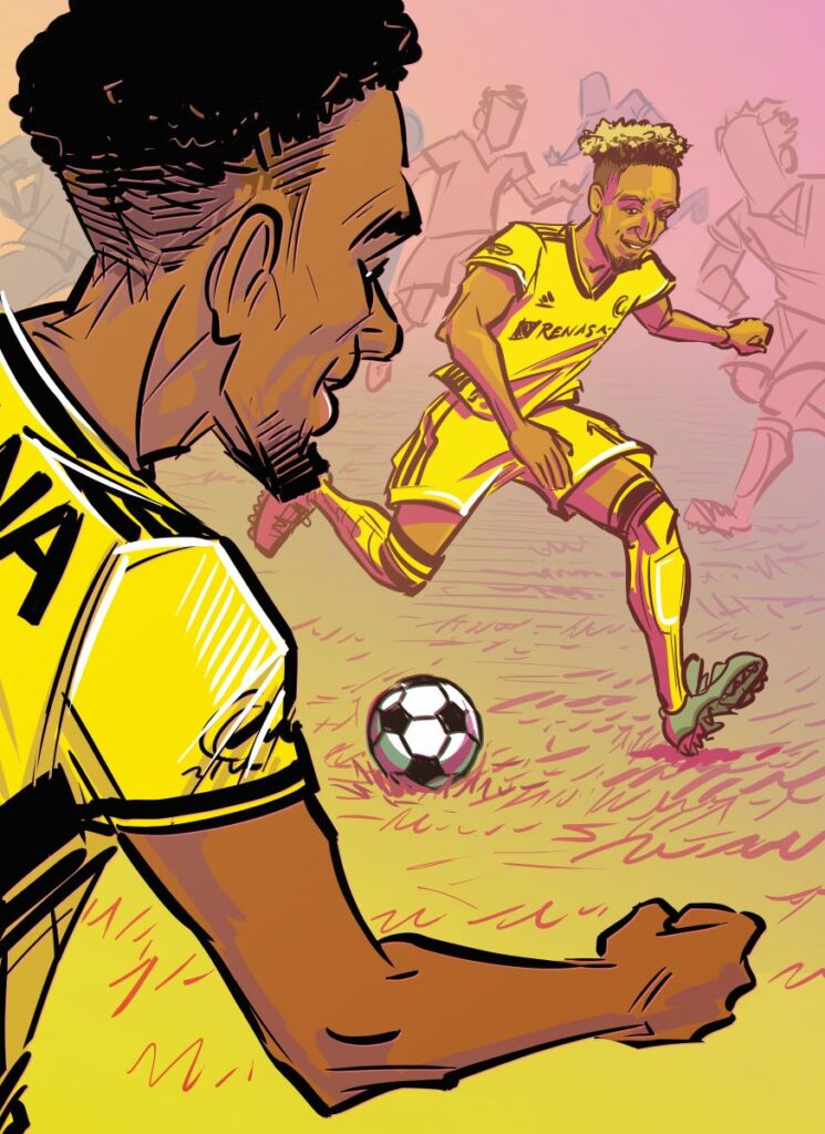 Hany loves his life, so much so that in March 2023, on his twenty-eighth birthday, he married his partner, Ashley Gowder, on this same field. They met here in Nashville, and at their townhouse near The Gulch, they drink tea, talk trash over Mario Kart, and play with their dogs. He is excellent at his job, the reigning most valuable player of Major League Soccer (MLS). At Geodis Park, when he gets on the ball, an entire city seems to hold its breath, waiting to see what he’ll do next.