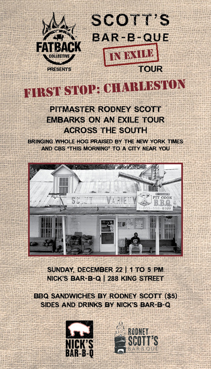 When the restaurant’s pithouse burned in 2013, a group of SFA friends including Nick Pihakis of Jim ‘N Nick’s Bar-B-Q and Sam Jones of Skylight Inn BBQ (they call themselves the “Fatback Collective”) rallied and helped him devise a plan to rebuild. Scott visited several cities across the South and cooked whole hogs to raise money, and his journey was chronicled by NPR, Charleston’s The Post and Courier, The Local Palate, and others.